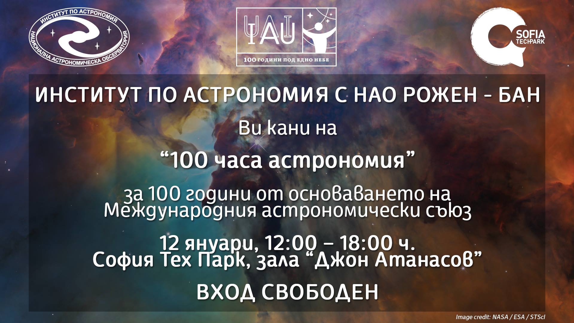 Със “100 часа астрономия” ще се присъединим към световния астромаратон, празнуван по цялата планета. Ще научиш какви са проявите на магнитните полета при звездите, ще имаш възможност да наблюдаваш космически лъчи, както и да видиш как и защо се сваля огледалото на големия телескоп в Националната обсерватория. Ще бъде пресъздаден и експериментът на Ератостен, с който се измерва обиколката на Земята. Не се колебай и добави в уикенда си щипка любопитство.