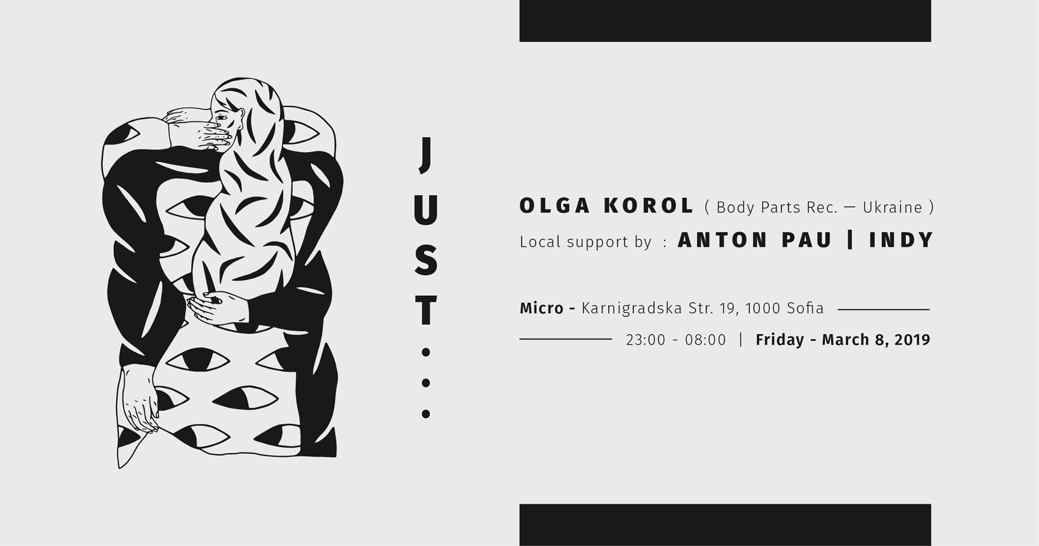 Украинката DJ и продуцент Olga Korol, която завзе с лекота световната клубна музикална сцена, пристига в София и ще превърне столичния Micro клуб в арена на докосващия електронен звук. През последните десет години Olga Korol не спря да експериментира с музиката и от трип-хоп достигна с най-тънки "струни" до меката на електронната музика така, че звукът на лейбълите ѝ хипнотизира безброй фенове по цял свят. Не пропускай гостуването ѝ в София, защото партито ще се помни дълго, а за тази емоция със сигурност ще допринесат и добре познатите ни диджеи Anton Pau и Indy.