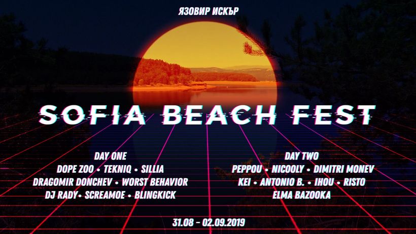 Замислял ли си се, че плажът може да е много по-близко, отколкото предполагаш? Измислили сме ти план – само на 30 минути от София. В събота сутринта тръгваме към SOFIA BEACH FEST 2019 – двудневният фест те очаква от 31 август до 1 септември на брега на яз. Искър. Гледка, плаж, водни спортове и най-вече музика с Dope Zoo, Sillia, както и електронната компания на Peppou, Risto и други.