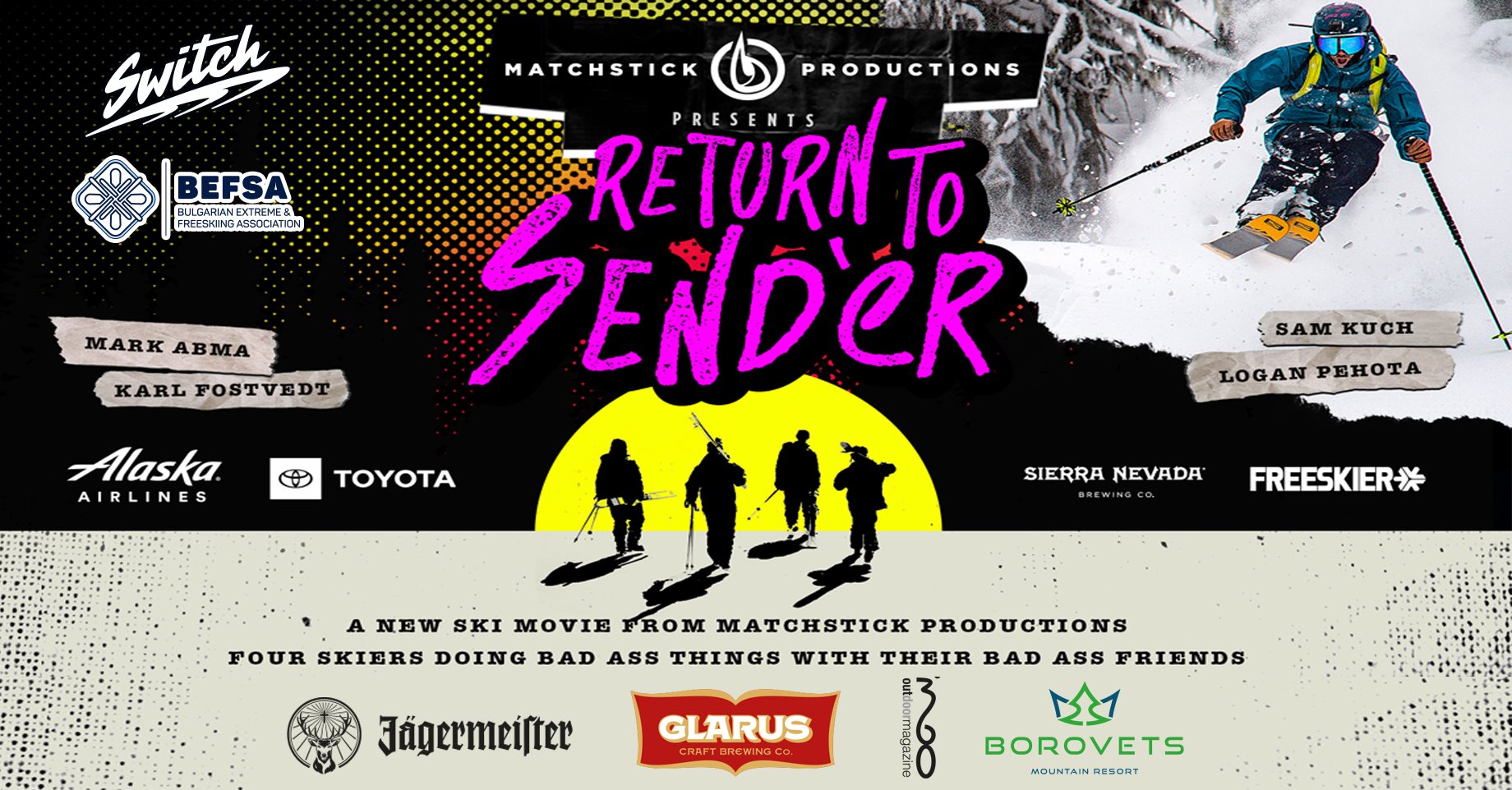 Вторник в „Суич“, дотук нищо необичайно, но този път барът се обединява с Българската асоциация по ски свободен и екстремен стил и ни канят на премиерата на новия филм на The Matschstick Productions: RETURN TO SEND'ER. Филмът включва четиримата елитни скиори – Mark Abma, Karl Fostvedt, Sam Kuch и Logan Pehota, а след прожекцията ще се забавляваме с музика от CиК BROS и много шотове.