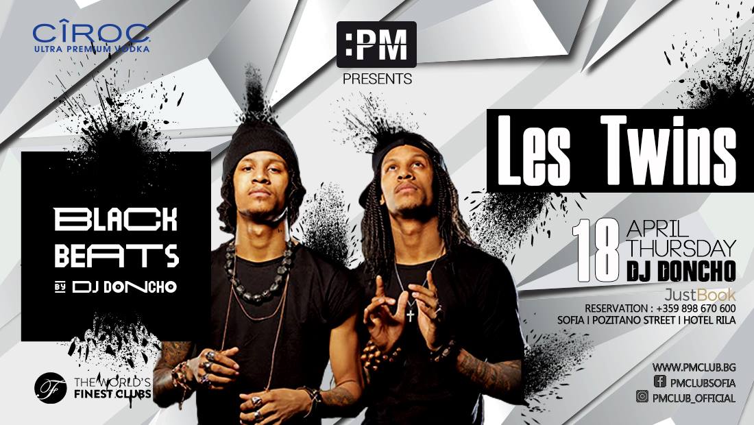 Отправяме се на хип-хоп приключение в PM Club. За любителите на танците и този тип музика вечерта се очертава истински шедьовър с Les Twins, които ще изпратят Black Beats формата в следващото измерение.