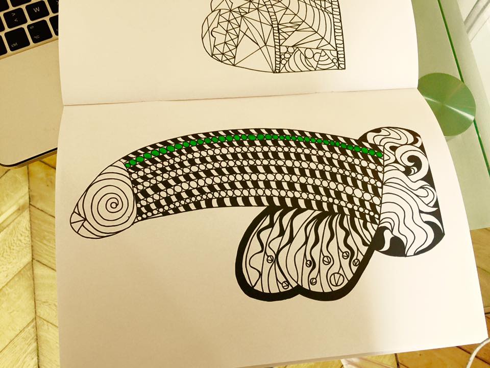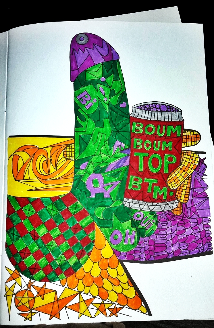 След проучвания разбрах, че такъв проект не съществува все още. Хванах маркерите и започнах да рисувам, решен да направя екзотична артистична книжка, елегантна, вдъхновена от духа дада и в стил ар деко. Реших да използвам истински снимки за прототип на илюстрациите и така създадох книга, която съдържа 30 илюстрации на големи твърди пениси за оцветяване, изцяло нарисувани на ръка.
