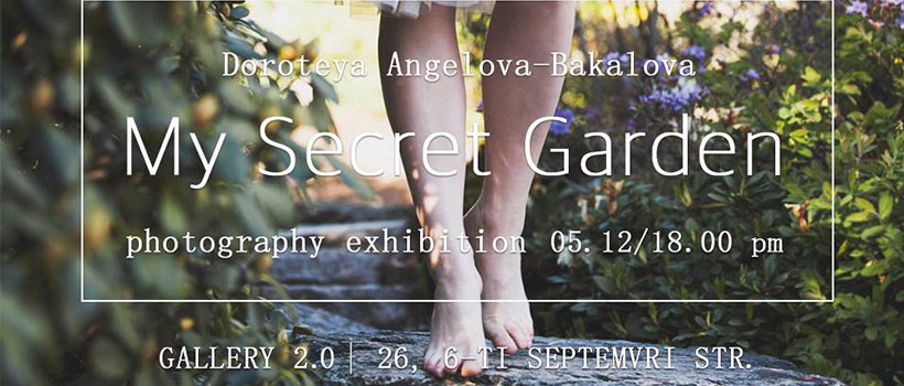 My Secret Garden е първата самостоятелна фотографска изложба на Доротея Ангелова-Бакалова, която този уикенд красиво ще заеме пространството на Gallery 2.0, създавайки мистичен таен свят с изявено доминиращ женски образ. Освен портрети в изложбата ще бъдат представени и фотографии, изобразяващи природни детайли, които да затвърдят приказността и женствеността на проекта.