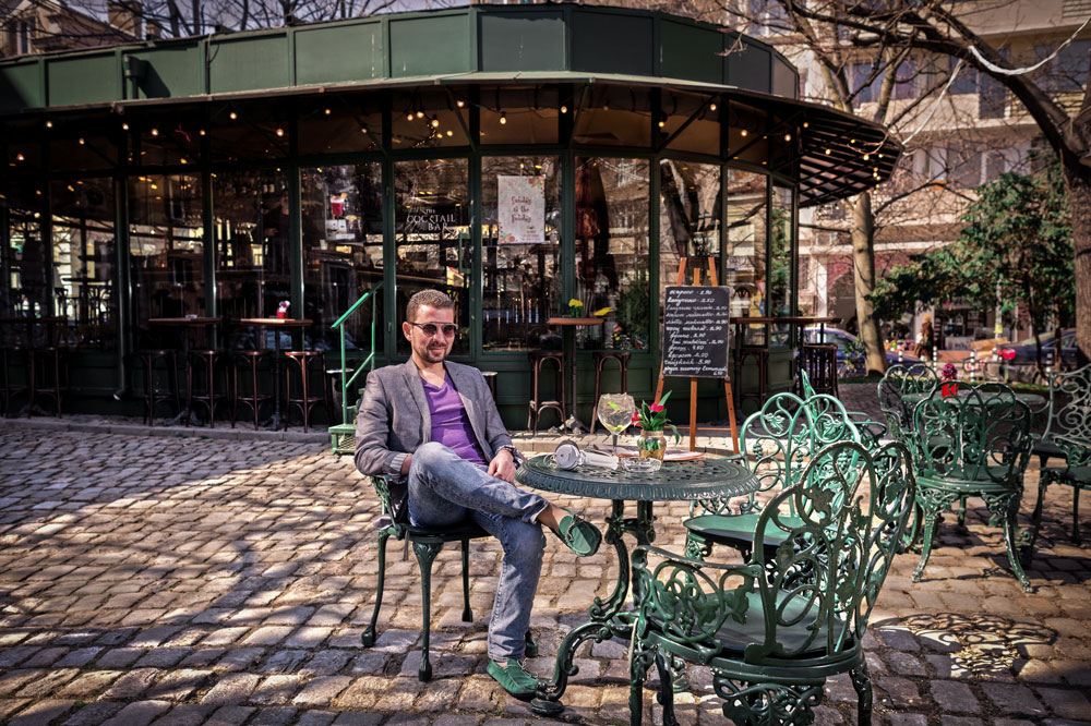Мястото, където можеш да го намериш напоследък, е The Cocktail Bar, онази опияняваща локация, сгушена романтично в малката павирана градинка между „Солунска“ и „Ангел Кънчев“.